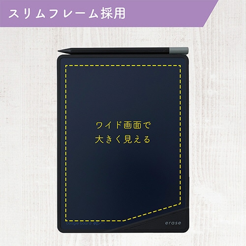 ●スリムフレーム採用。ワイド画面で大きく見えて筆記面積がUP。黒の電子メモパッドです。