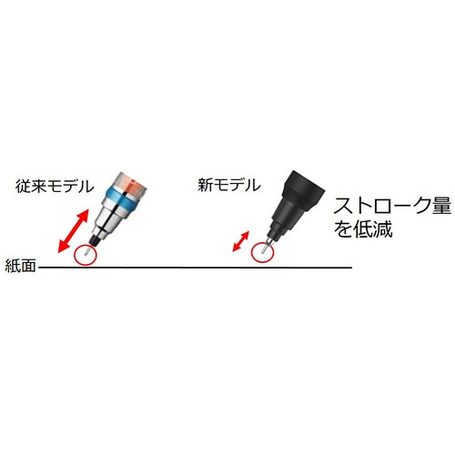 芯が回ってトガりつづけるシャープペン。筆記時のブレを抑えたエラストマーグリップ搭載。