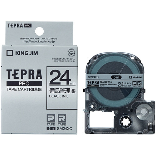 キングジム テプラ PRO テープカートリッジ 備品管理ラベル 24mm 銀/黒文字 SM24XC 1個
