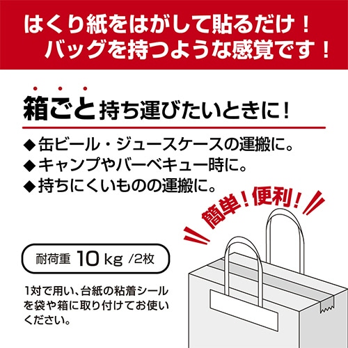 取っ手のない大きな袋や箱などにはがして貼るだけでバッグのように持ち運べます。