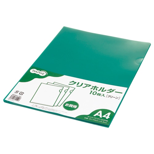 TANOSEE カラークリアホルダー(単色タイプ) A4 グリーン 1パック(10枚)