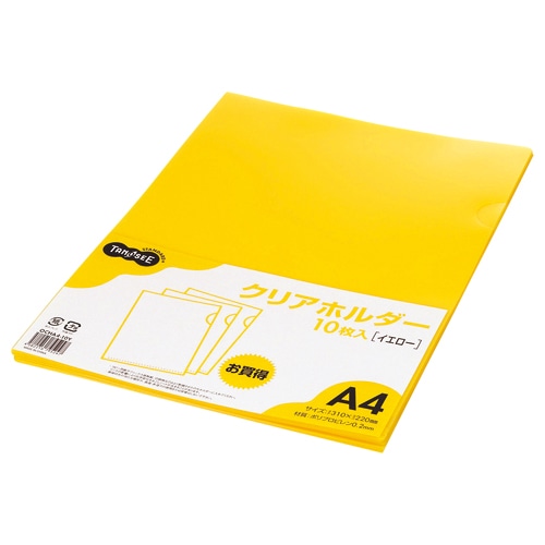TANOSEE カラークリアホルダー(単色タイプ) A4 イエロー 1パック(10枚)