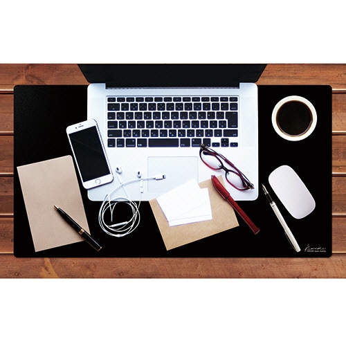 ●再生PVC素材、厚み2.0mm。ブラックのデスクマット。