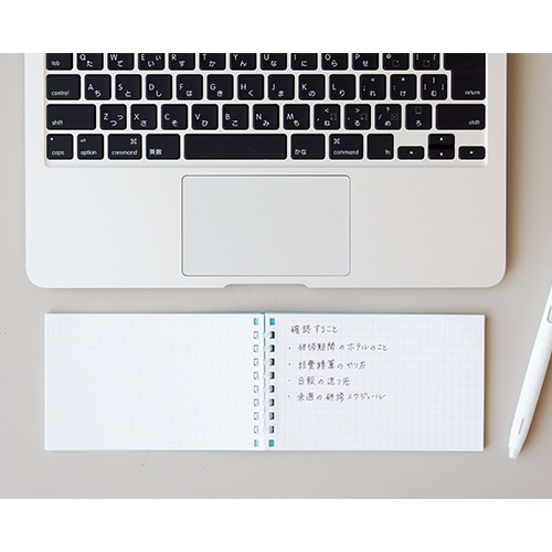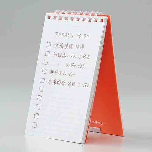 ●リーフ差し替えも可能なスタンドメモ。表紙色はレッドです。