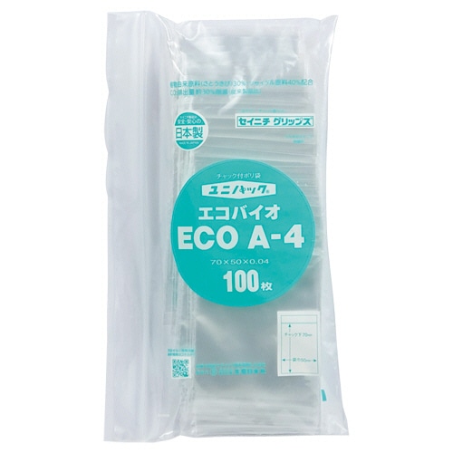 セイニチ ユニパック エコバイオ(チャック付ポリエチレン袋) ヨコ50×タテ70×厚み0.04mm ECO A-4 1パック(100枚)