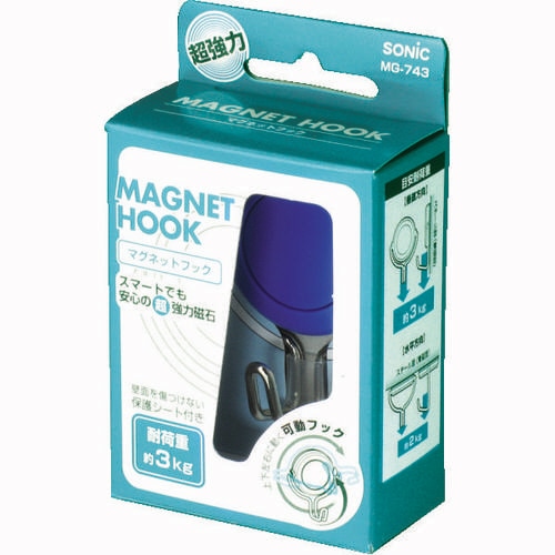 ソニック 超強力マグネットフック 中 耐荷重約3kg 青 MG-743-B 1個