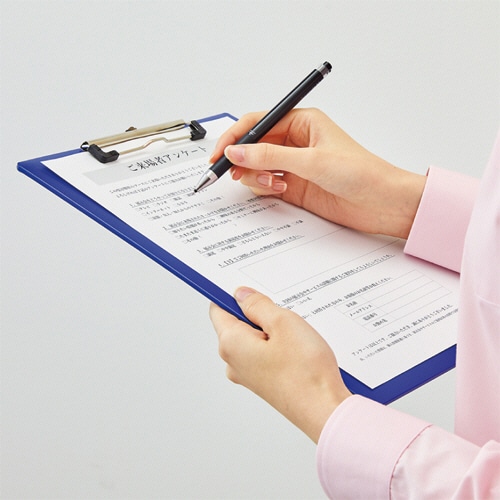 厚くてしっかり、なのに軽量で携帯に便利なクリップボード。安心の抗菌仕様なのでアンケートなどの記入にも。