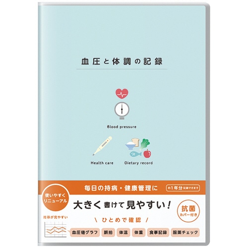 ダイゴー 血圧と体調の記録 A5 112ページ イラスト ブルー R2304 1冊