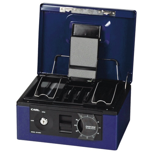 | 商品仕様 | ●サイズ/A5 ●色/ブルー ●施錠方法/シリンダー錠+ダイヤル錠 ●内寸/W244×D168×H73mm ●外寸/W278×D225×H135mm ●重量/2.6kg ●材質/SPCC、ABS ●付属品/鍵2個 ●その他仕様/●紙幣2段トレー ●書類押さえ ●硬貨飛散防止 |