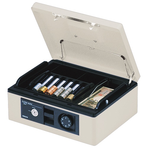 商品仕様 | ●サイズ/B5 ●色/ライトグレー ●コイン収納枚数/500円:50枚、100円:50枚、50円:50枚、10円:50枚、5円:50枚、1円:50枚 ●施錠方法/シリンダー錠+ダイヤル錠 ●内寸/W275×D198×H59mm ●外寸/W318×D257×H128mm ●重量/2.85kg ●材質/本体:鋼板(焼付塗装)、本体ケース・トレー・前面パネル:ABS ●付属品/鍵×2 ●その他仕様/●コインカウンター付トレー(取り外しOK)、フタハネ上げ調節付、書類押さえ(フタ裏)付 |