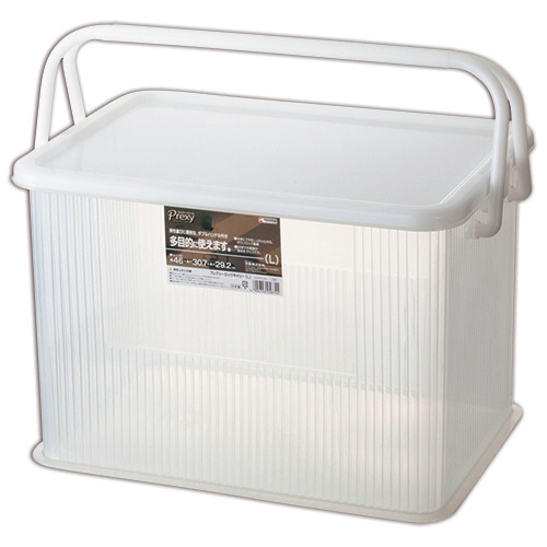 | 商品仕様 | ●サイズ/L ●容量/約30L ●色/クリアナチュラル ●外寸/W460×D307×H292mm ●内寸/W397×D269×H268mm ●許容内容物重量/4kg ●材質/ポリプロピレン ●重量/1607g ●シリーズ名/Prexy |