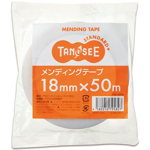 商品仕様 | ●テープサイズ/幅18mm×長さ50m ●厚み/0.058mm ●内径/76mm ●色/透明 ●材質/基材:アセテートフィルム、粘着材:特殊アクリル系粘着材 ●付属テープカッター/なし ●シリーズ名/TANOSEE(スタンダード) ●テープの幅/18mm |