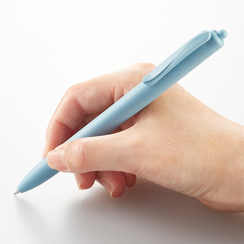 ●再生材比率ほぼ100%でできた軸材で環境に配慮したボールペン。ボール径0.7mm、インク色は黒(軸色:ライトブルー)です。
