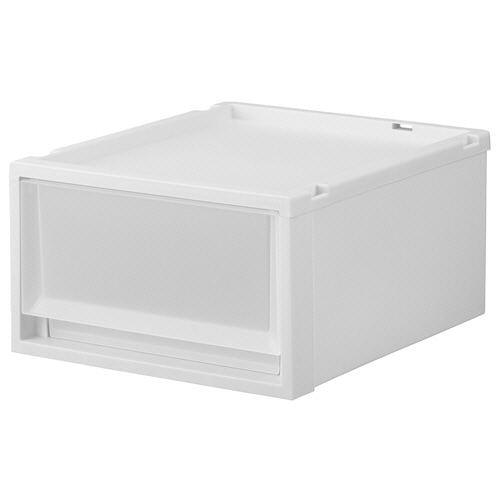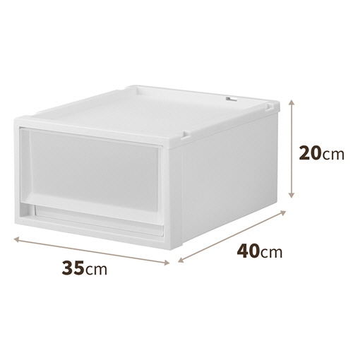 ●幅35cm、高さ20cmのホワイトクリアのケースです。スチールラックでの使用やフリーデスクの共通引出にもおすすめです。