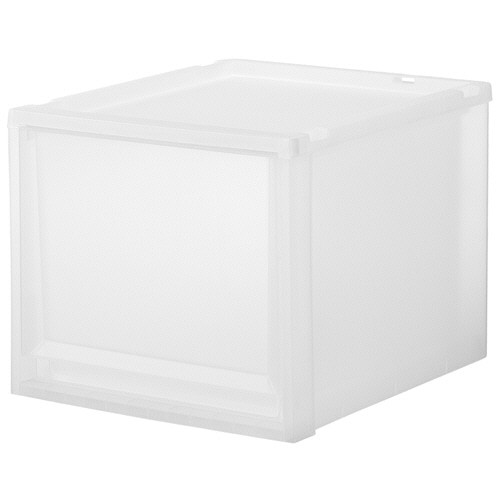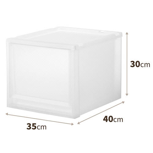 ●幅35cm、高さ30cmのクリアのケースです。スチールラックでの使用やフリーデスクの共通引出にもおすすめです。