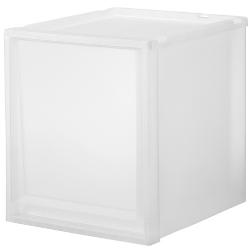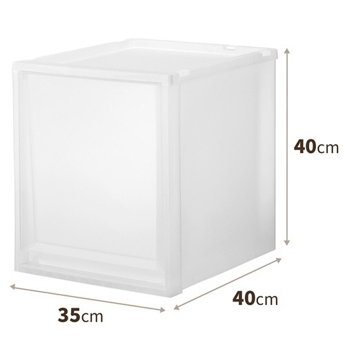 ●幅35cm、高さ40cmのクリアのケースです。スチールラックでの使用やフリーデスクの共通引出にもおすすめです。