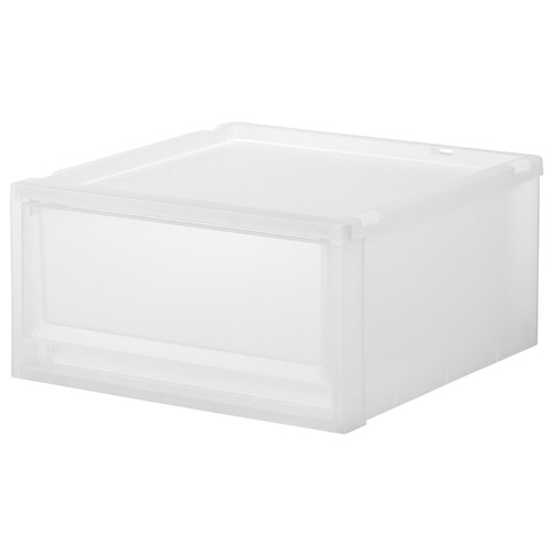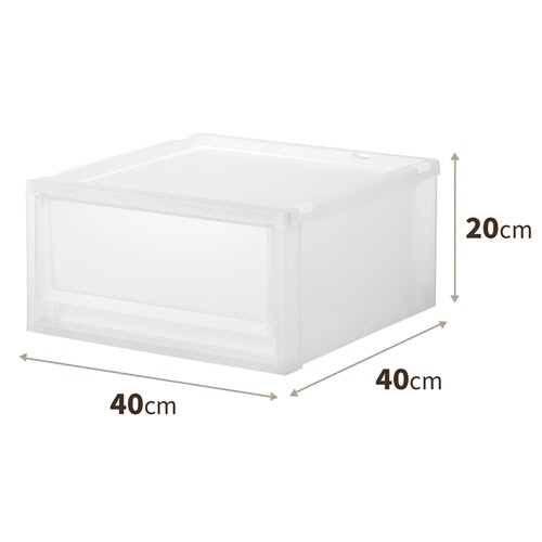 ●幅40cm、高さ20cmのクリアのケースです。スチールラックでの使用やフリーデスクの共通引出にもおすすめです。