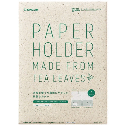 キングジム 二つ折り紙製ホルダー(茶殻紙タイプ) A4タテ(見開きA3) 719-2 1パック(2枚)