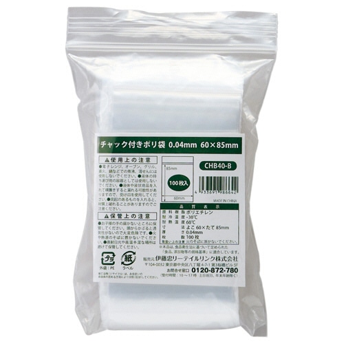 伊藤忠リーテイルリンク チャック付ポリ袋 0.04×60×85mm CHB40-B 1パック(100枚)