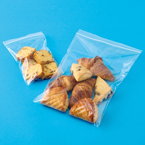 食品衛生法対応のチャック付ポリ袋。開けやすい段ずれ仕様。