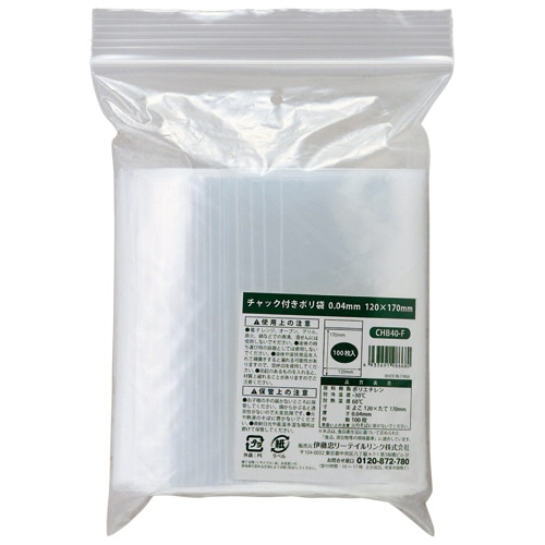 伊藤忠リーテイルリンク チャック付ポリ袋 0.04×120×170mm CHB40-F 1パック(100枚)