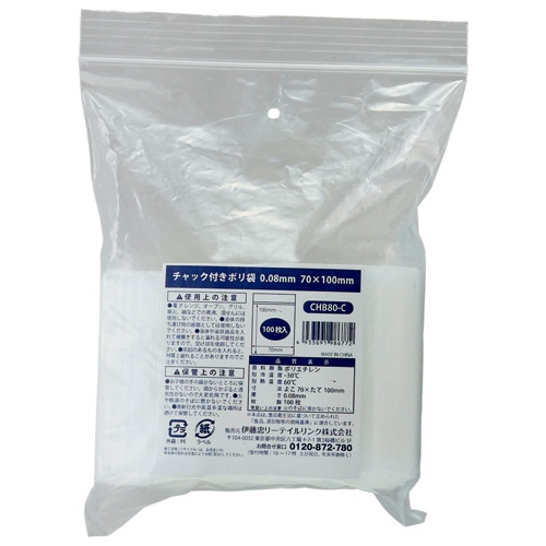 伊藤忠リーテイルリンク チャック付ポリ袋 0.08×70×100mm CHB80-C 1パック(100枚)