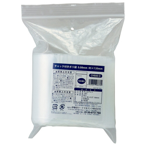伊藤忠リーテイルリンク チャック付ポリ袋 0.08×85×120mm CHB80-D 1パック(100枚)