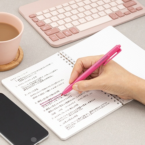 ●すぐ書けるノック式の蛍光ペン、クリックブライト。インク色はオレンジです。