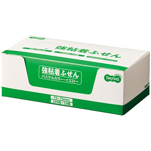TANOSEE 強粘着ふせん 75×75mm パステルカラー・イエロー 1パック(10冊)
