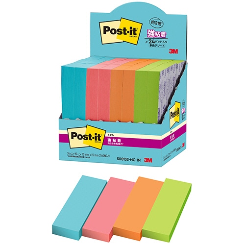 3M ポスト・イット 強粘着ふせん マルチカラー1 75×25mm 4色 5001SS-MC-1N 1パック(24冊)