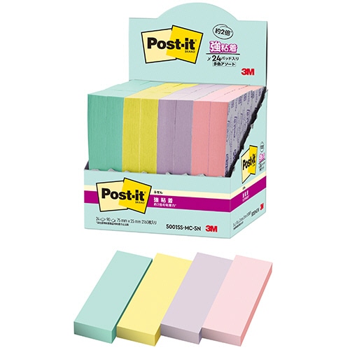 3M ポスト・イット 強粘着ふせん マルチカラー5 75×25mm 4色 5001SS-MC-5N 1パック(24冊)