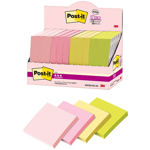 3M ポスト・イット 強粘着ノート マルチカラー4 75×75mm 4色 6541SS-MC-4N 1パック(12冊)