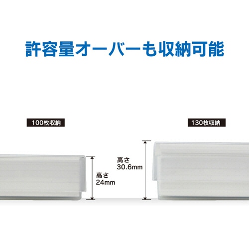 ●ケース上蓋部分が重ね式設計になっていますので、名刺100枚はもちろん、130枚の収納が可能です。名刺枚数の厚みが30mm未満の場合におすすめです。