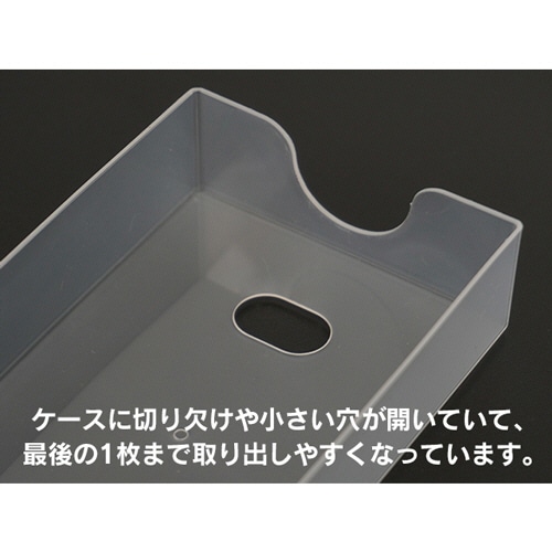 ●ケースに「切り欠け」や底に小さい穴が開いており、最後の1枚まで取り出しやすくなっております。