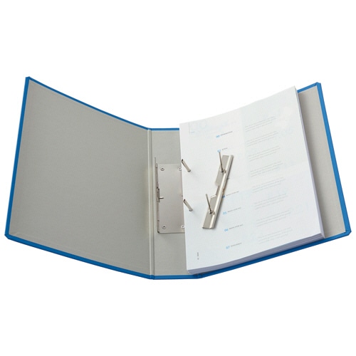 ●片手でらくらく。軽く引くだけでかんたんオープン。片開きパイプ式ファイルのA4タテ、背幅76mmの青です。