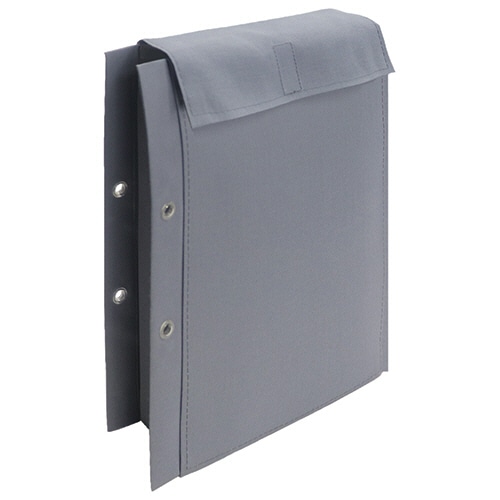 商品仕様 | ●サイズ/大 ●穴数/2穴 ●穴径/6mm ●穴ピッチ/80mm ●留め方式/面ファスナー式 ●寸法/タテ305×ヨコ220(+25)mm ●背幅/30mm ●色/薄ネズ ●材質/寒冷紗(布) |