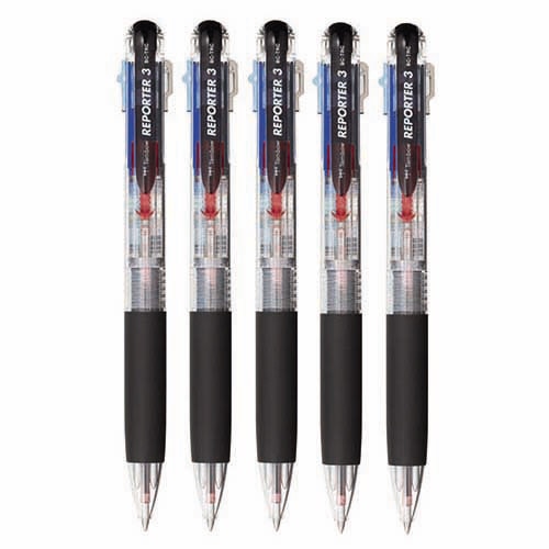 トンボ鉛筆 3色油性ボールペン リポーター3 0.7mm (軸色 透明) 業務用パック BC-TRC205P 1箱(5本)