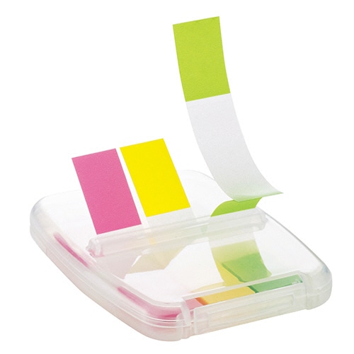 ●丈夫で色鮮やかなPET樹脂のふせん。ブライトカラー4色。ケース付。