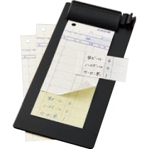 商品仕様 | ●寸法/タテ175×ヨコ70mm ●伝票タイプ/複写式 ●複写枚数/2枚 ●行数/10行 ●カーボン/ノーカーボン ●消費税欄/無 ●その他仕様/●刷色:青紫 ●複写内訳:(1枚目)お会計票、(2枚目)お会計票 ●備考/※1枚目にミシン目10本入 ※箱入(1組ごとにバラ入) (箱は使用後の伝票保管箱として利用できます。) |