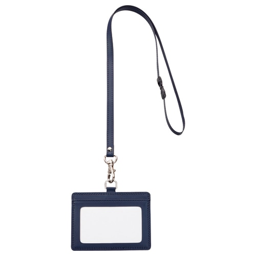 TANOSEE 合皮製ネームカードホルダー ヨコ型 ストラップ付 ブルー 1個