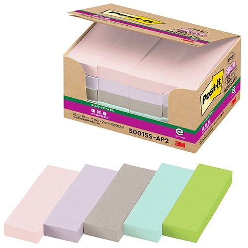 3M ポスト・イット エコノパック 強粘着ふせん 再生紙 75×25mm パステルカラー5色 5001SS-AP2 1パック(20冊)