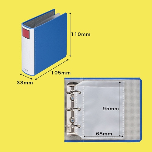 | 商品仕様 | ●サイズ/ミニサイズ ●色/グレー ●寸法/W約105×D33×H110mm ●材質/表紙:オレフィン素材貼表紙、芯材:再生紙、背見出し紙:紙、とじ具:スチール、ポケット:PP ●その他仕様/●付属品:背見出し紙×2枚、ポケットリフィル×10枚 ●ポケット内寸:約W68×H95mm |