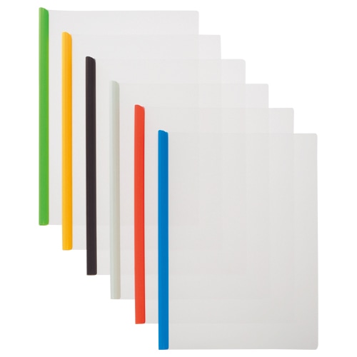 表紙に書類を挟んで、レールをスライドしてとじるだけ。