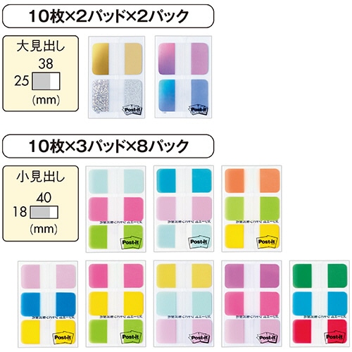 ●フィルムインデックス 厚口 マルチカラーのアソートタイプ。40×18mmと38×25mmの2種類のサイズ。