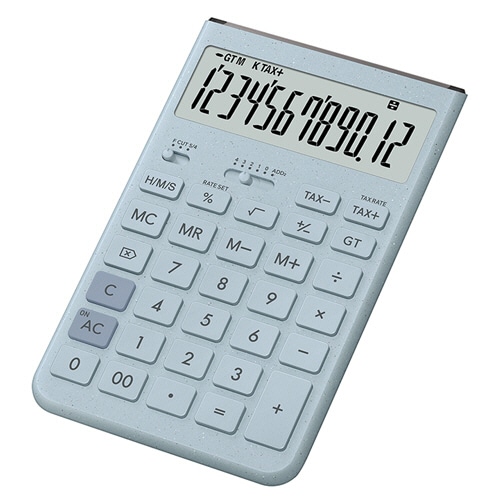 ●優れた操作性と視認性のジャストタイプ、12桁表示。カラーはグレイッシュブルーです。
