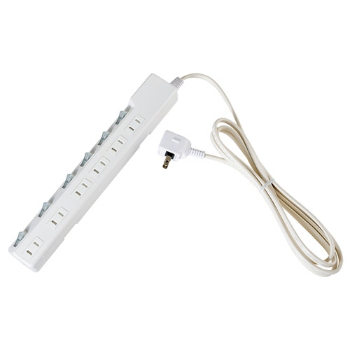 ●本体の置き方によって差込口の向きが選べる、ブレーカー付の6個口OAタップ。ケーブル長さは2mです。
