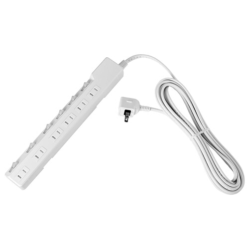●本体の置き方によって差込口の向きが選べる、ブレーカー付の6個口OAタップ。ケーブル長さは5mです。