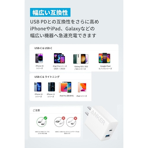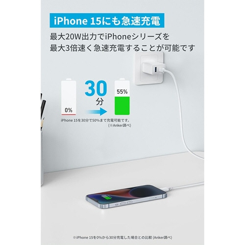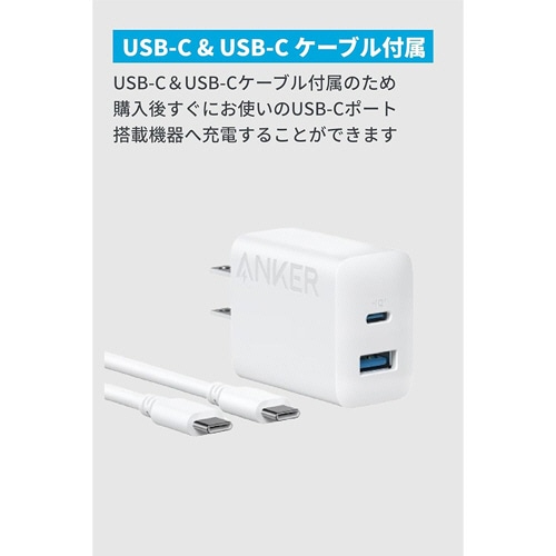アンカージャパン 急速充電器 ANKER Charger(20W 2ポート)with USB-Cケーブル ホワイト B2348N21 1個