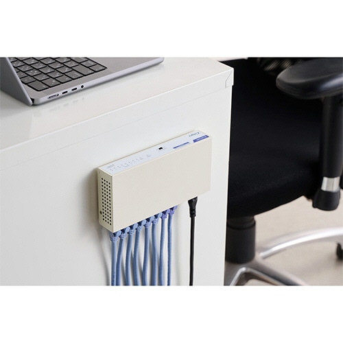 ●ファンレスで耐熱50℃に対応し、ループ検知機能も搭載した1000BASE-T対応の電源内蔵メタル筐体8ポートハブ。色はホワイトです。