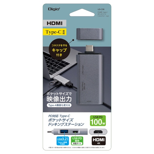 ナカバヤシ PD対応 Type-C ポケットサイズドッキングステーション グレー UD-C08GY 1個